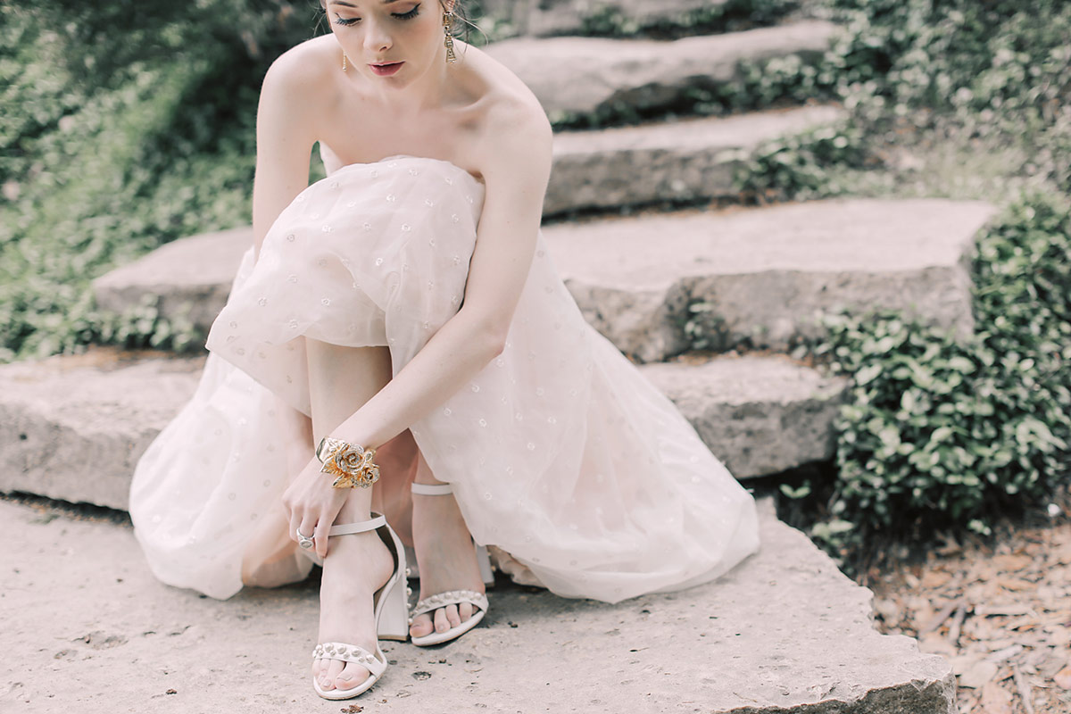 I fell in love with the Stuart Weitzman MOREPEARLS when I first saw them on Instagram…I now own them in both red and in white. The white MorePearls is part of Stuart Weitzman’s bridal collection and you can see it would make a stunning shoe for the big day! I love the view of this shoe from the back with the three dimensional pearl details. As a bride-to-be, I am in the mood for romantic white dresses. I’ve been considering this 50s strapless cocktail dress I’m wearing for the reception after the ceremony…it is such a dream come true with these shoes.