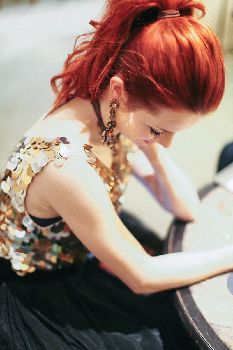 I wore a 60’s pailette top and 50’s taffeta skirt with Lanvin jewelry and Prada pumps.