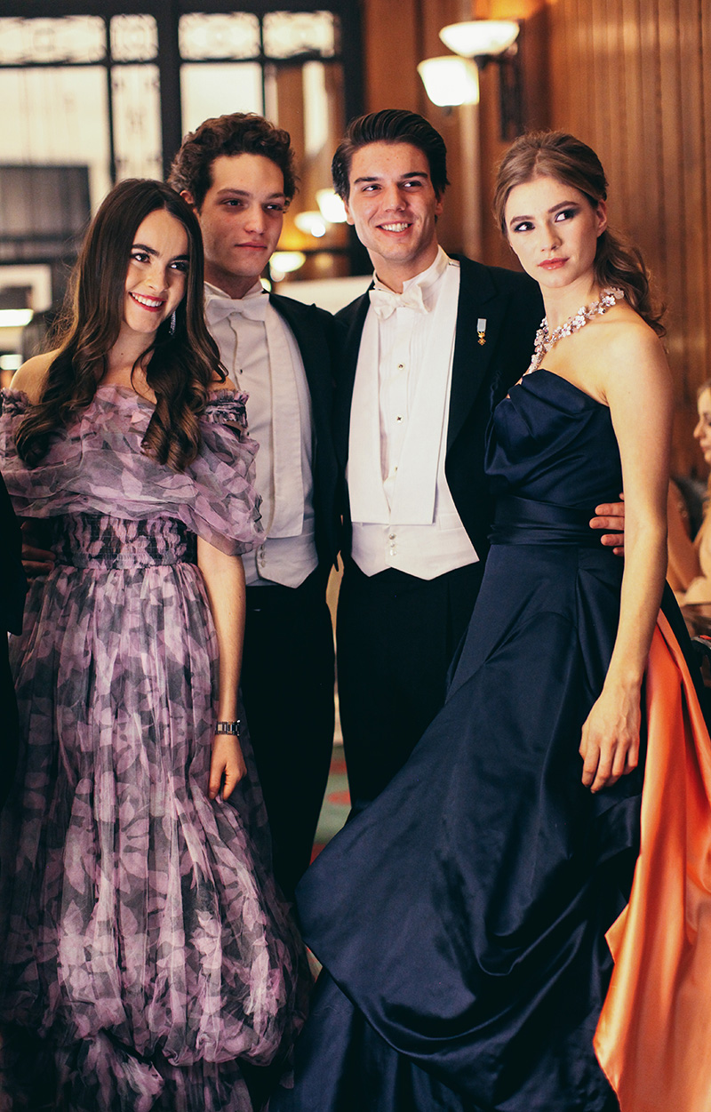 Melusine Ruspoli in Chanel Haute Couture with her cavalier Marquis Giorgio Sanjust di Teulada and Zita D’Hauteville with her cavalier Prince Amaury de Bourbon Prince de Parme.
