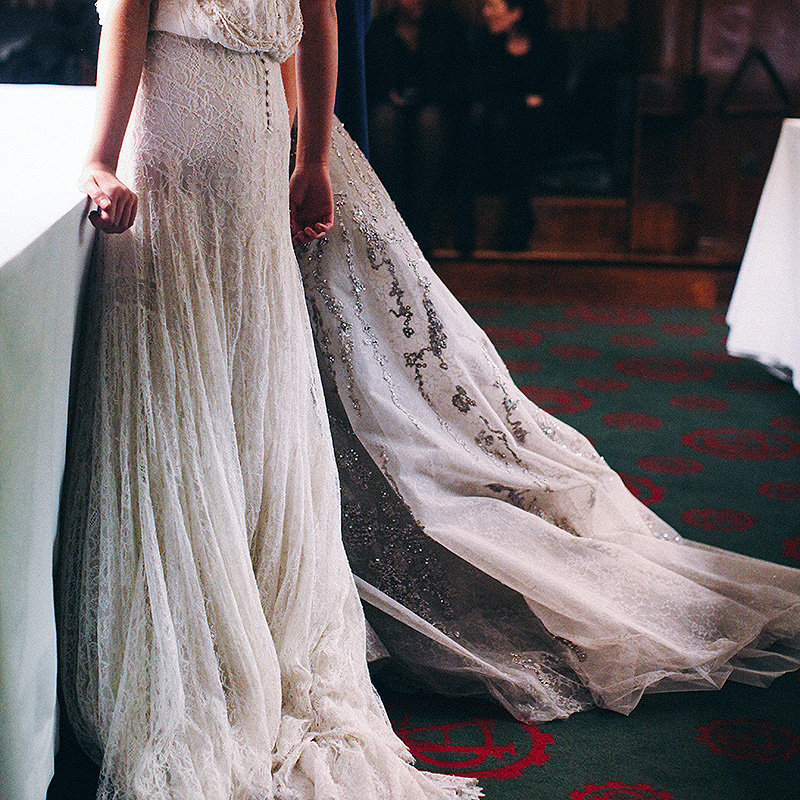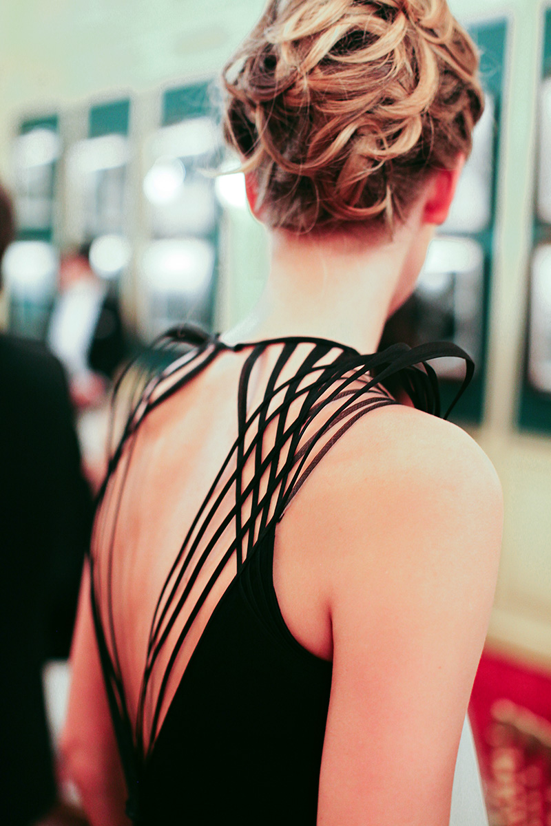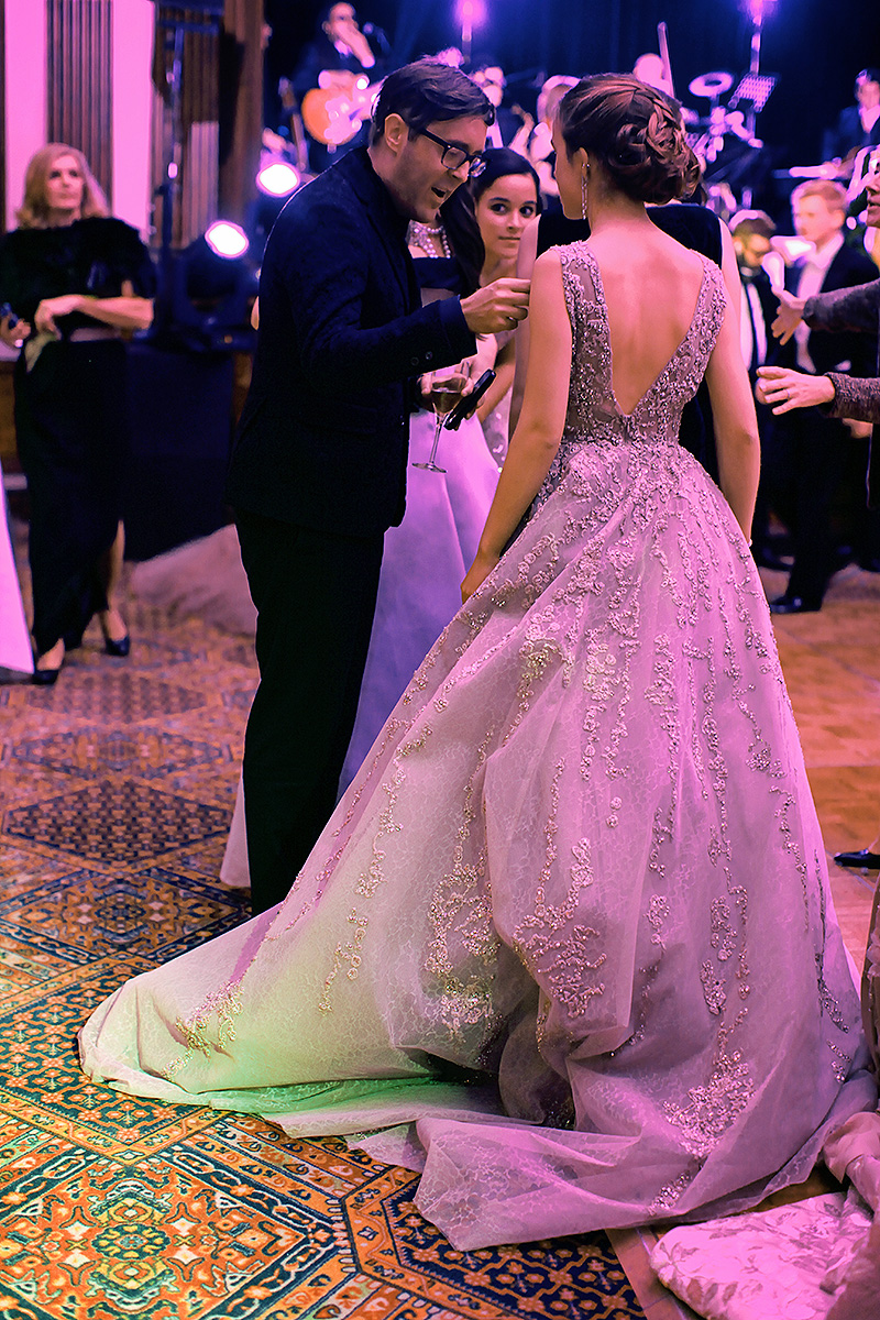 Melusine Ruspoli wears a stunning backlit Chanel Haute Couture gown in the foreground. Rebecca Eu in the background wearing Alexis Mabille Haute Couture.